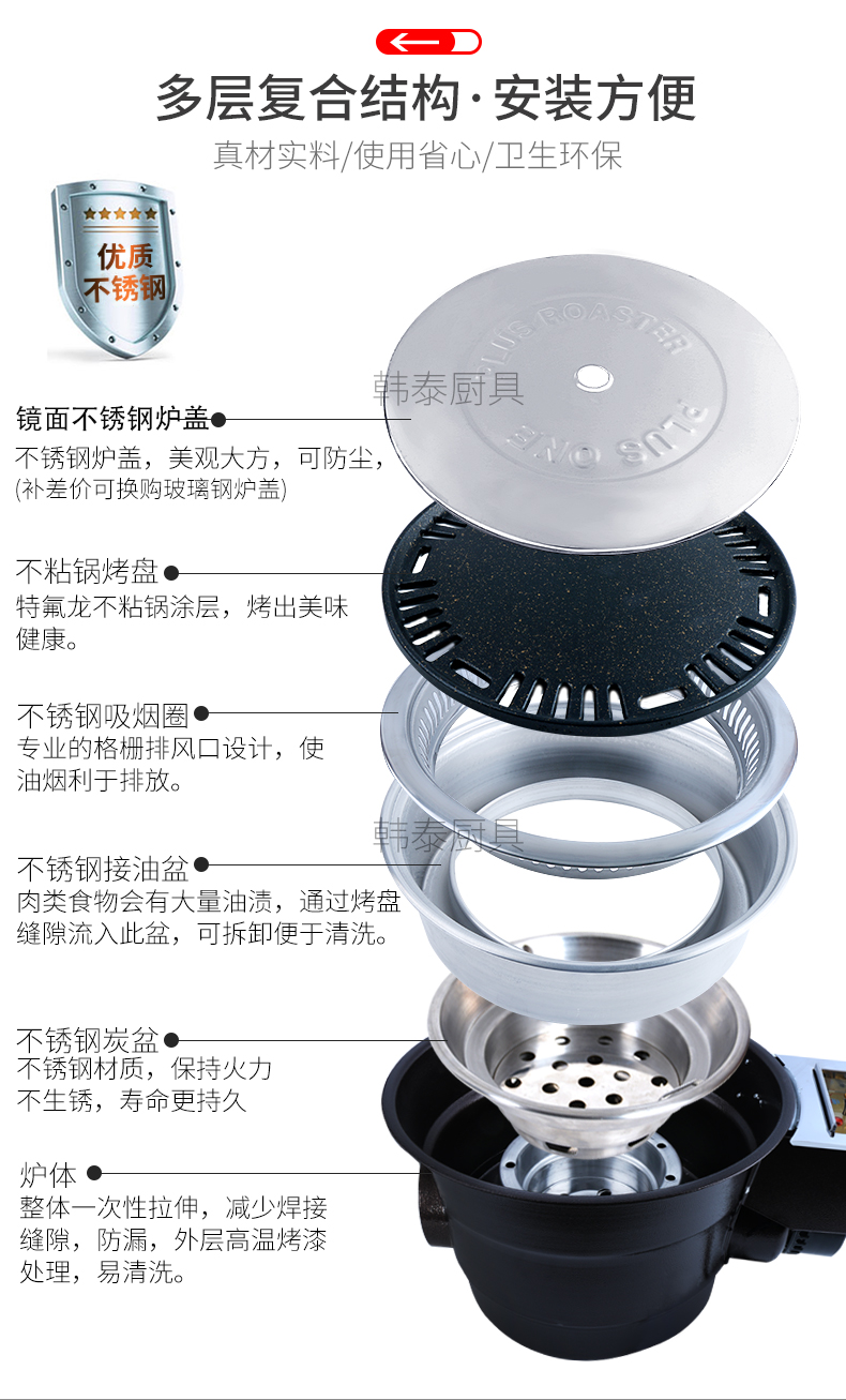 自消烟炭烤炉分体开关